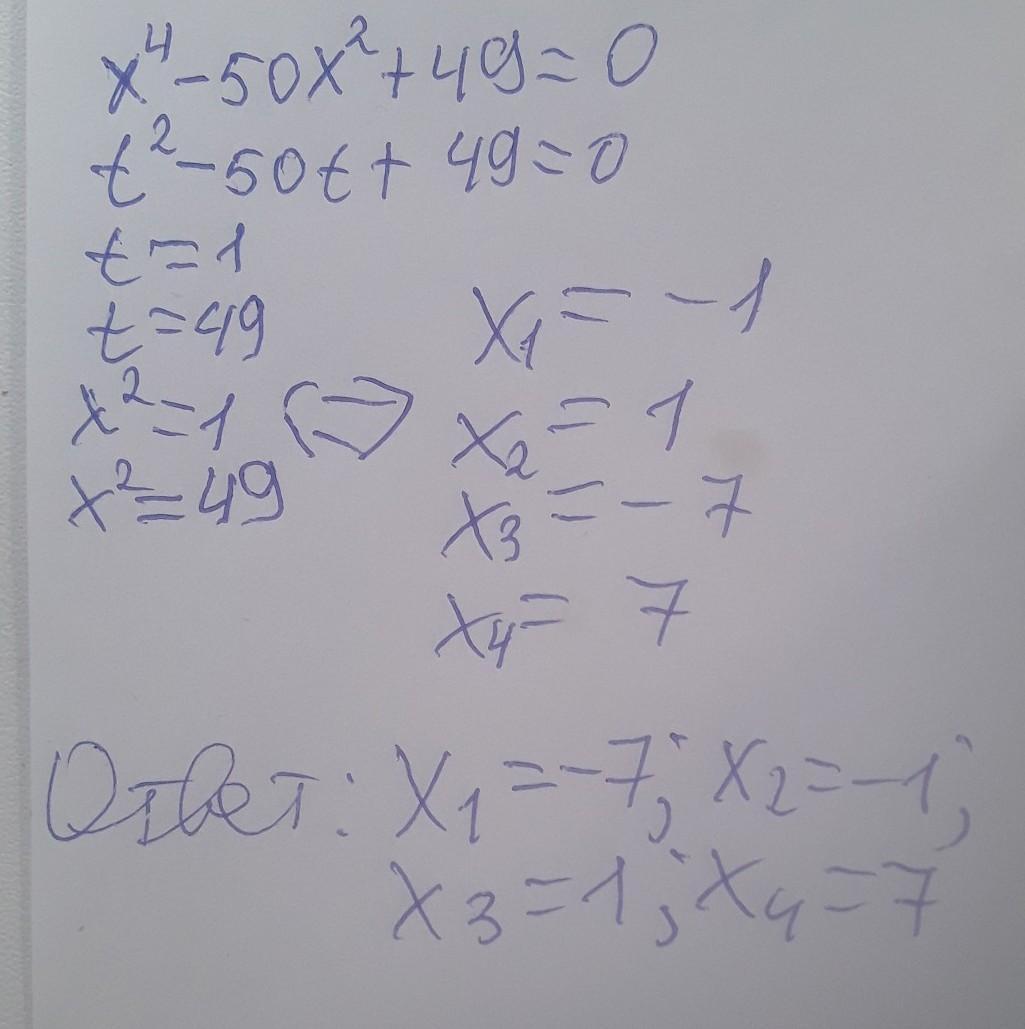 1) х^4-50х^2+49=0