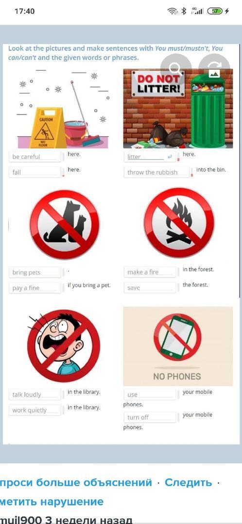 - You mustn't bring pets; you must pay a fine if you bring a pet