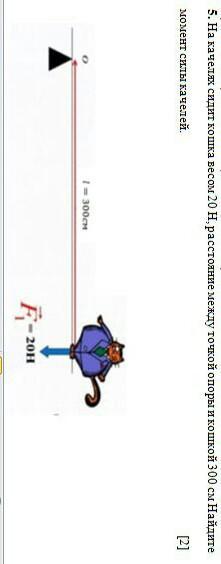 На качелях сидит кошка весом 20 Н расстояние между точкой опоры и кошкой 300 см Найдите момент силы качелей..сор очень срочно надо.. 7 класс .. плиз помогите.. дам 50 баллов