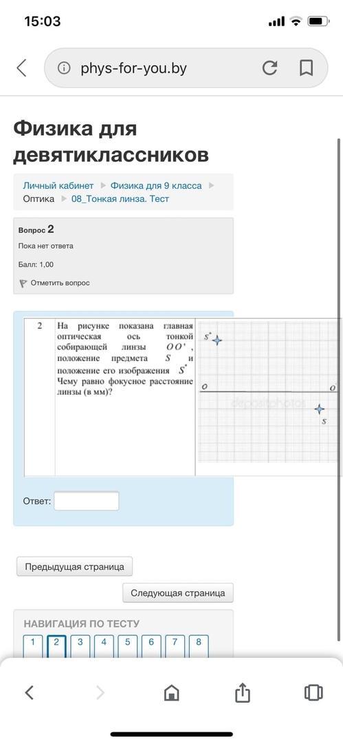На рисунке показана тонкая оптическая ось тонкой собирающей линзы OO, положение предмета S и положение его изображения S* ,чему равно фокусное расстояние линз в мм?
