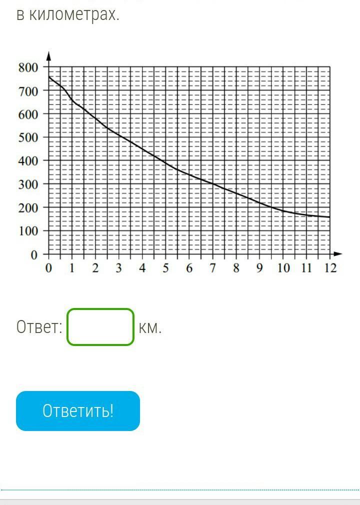 На графике изображена зависимость атмосферного давления от высоты над уровнем моря. На горизонтальной оси отмечена высота над уровнем моря в километрах, на вертикальной — давление в миллиметрах ртутного столба. Определи по графику, на какой высоте атмосферное давление равно 220 миллиметрам ртутного столба. Ответ дайте в километрах.