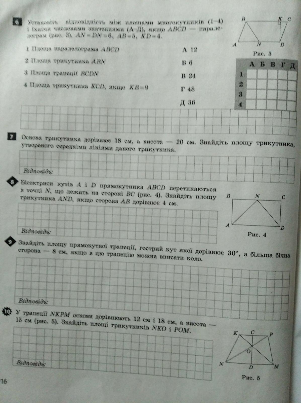 У трапеції NKPM основи дорівнюють 12 і 18 см ,а висота - 15 см. Знайдіть площі трикутників NKO і POM. Пожалйстаа