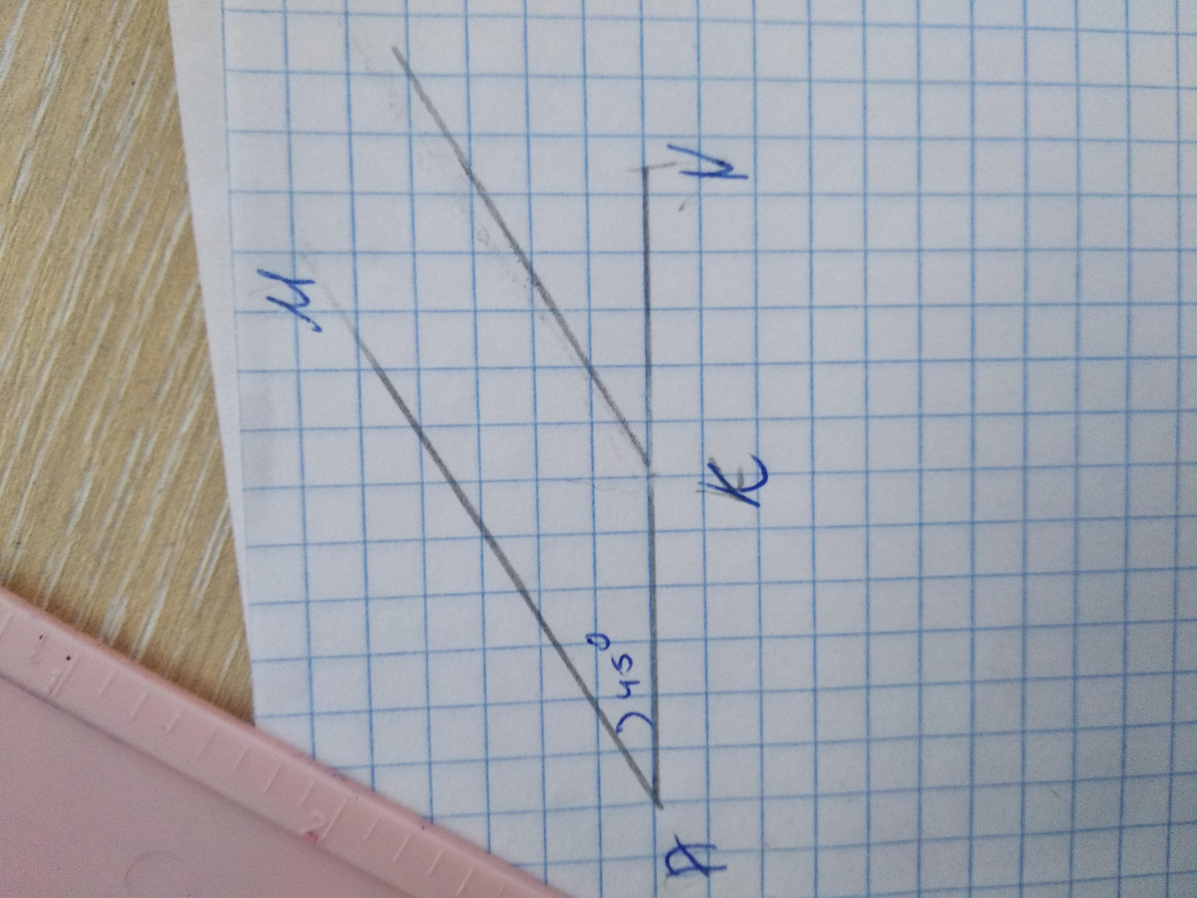Начерти угол MAN?равный 45 градусам.Отметь на стороне AN точку K.проведи через неё прямую,параллельную стороне MA угла MAN
