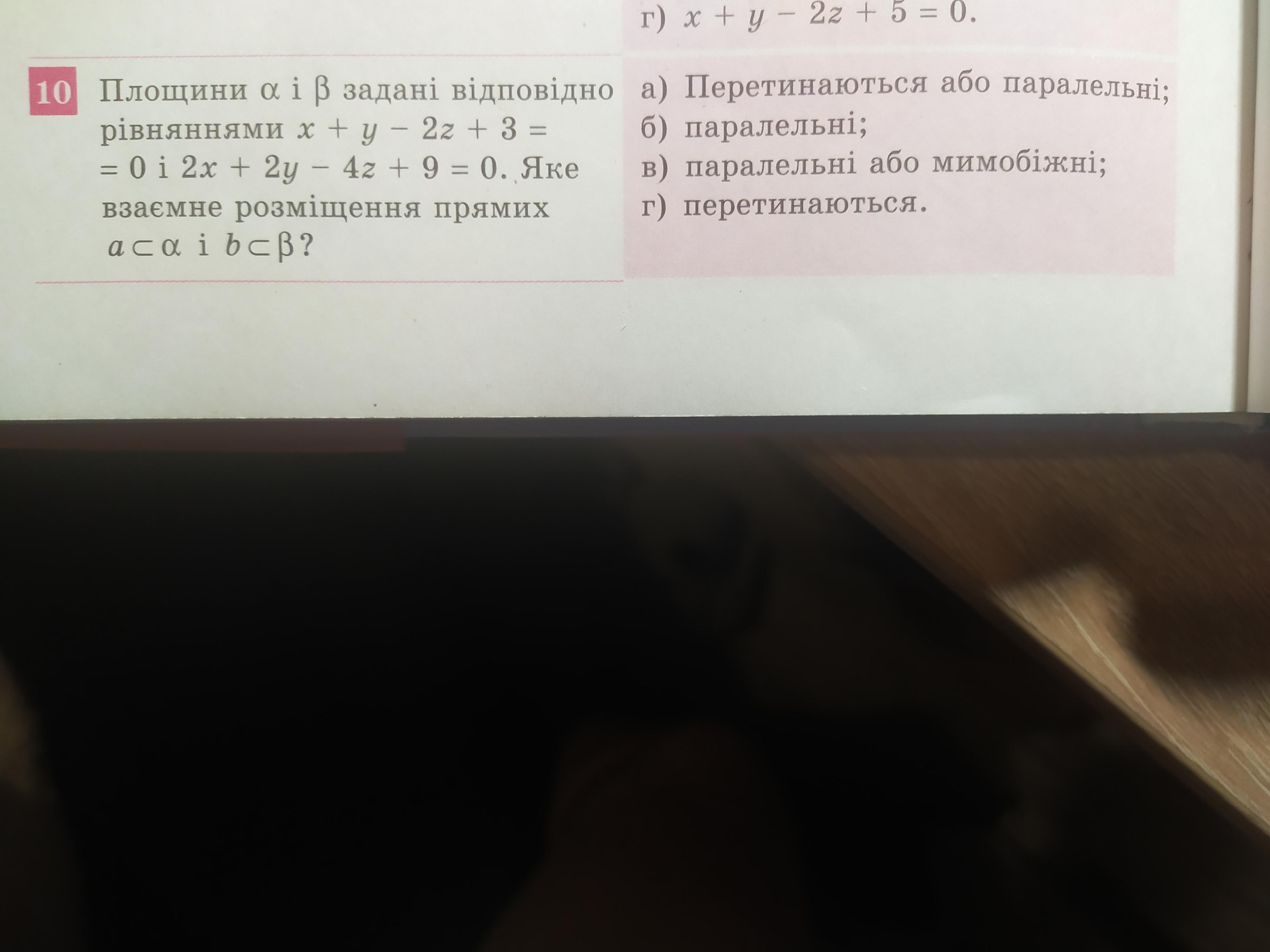 СРОЧНО Площіни a і b задані відповідно рівняннями x+y-2z+3=0 2x+2y-4z+9=0. Яке взаємне розміщення прямих а і в, які належать площінам відповідно?.