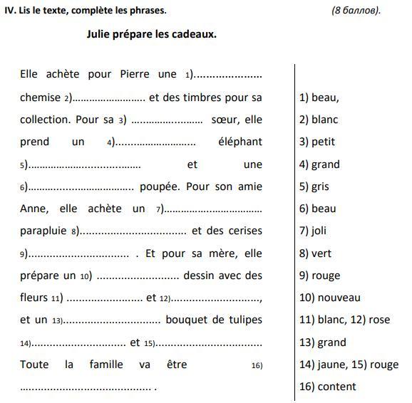 1. belle 2. blanche 3. petite 4. grand 5. gris 6. nouvelle 7. belle 8. verte 9. rouges 10. grand 11. blanches 12. rouges 13. joli 14. jaunes 15. roses