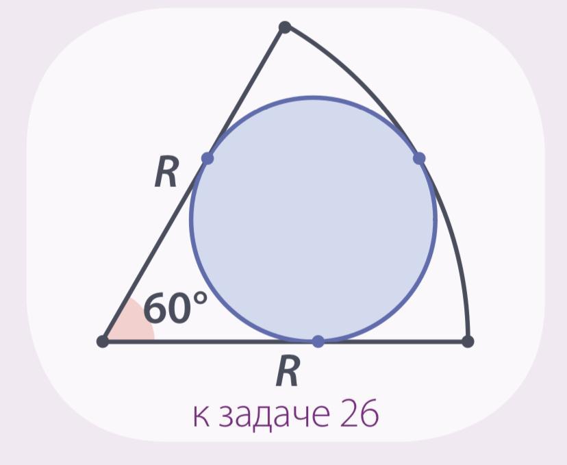 Дан сектор круга радиуса R с углом 60°. Найдите радиус окружности, вписанной в сектор.