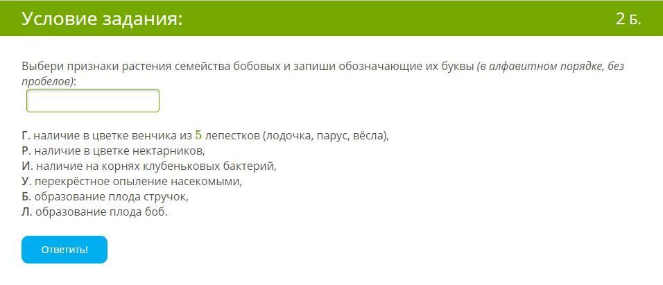 1) Г наличие в цветке венчика из 5 лепестков(лодочка, парус,вёсла)