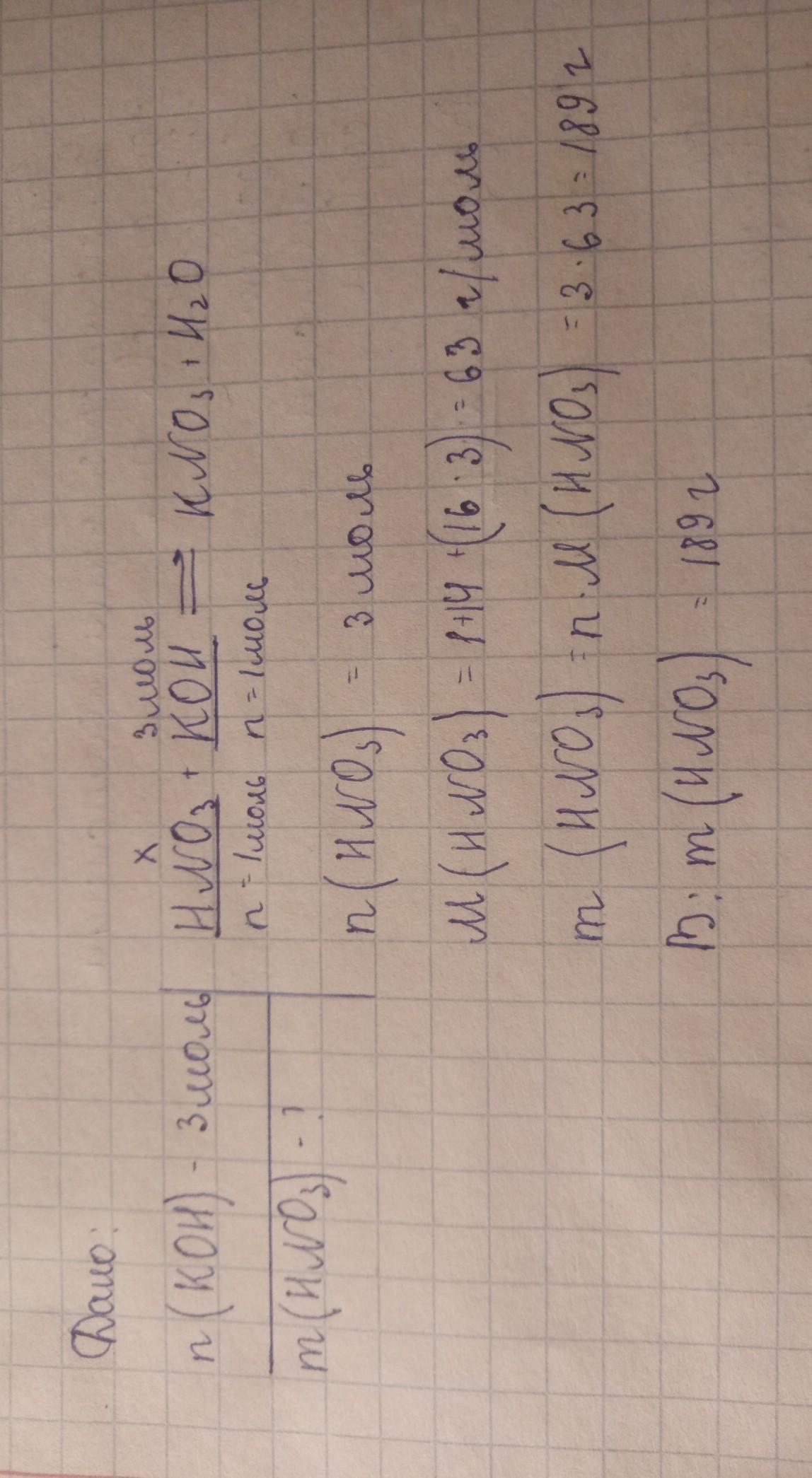 обчисліть масу нітратної кислоти необхідну для нейтралізації калій гідроксиду кількість речовини 3 моль