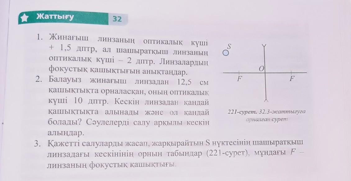 линзадағы кескінінің орнын табыңдар (221-сурет), мундагы F-