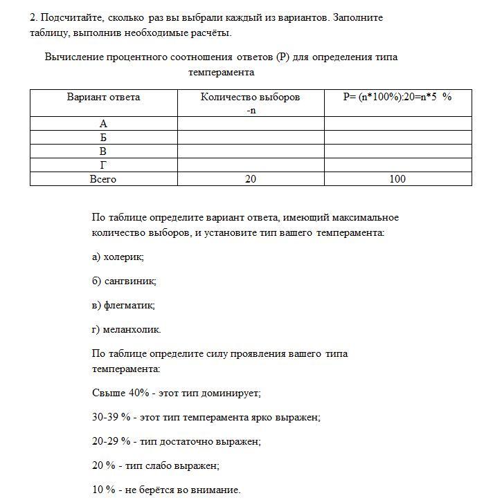 1. а) несдержан, вспыльчив; б) энергичен и деловит; в) последователен и обстоятелен; г) теряюсь в новой обстановке.