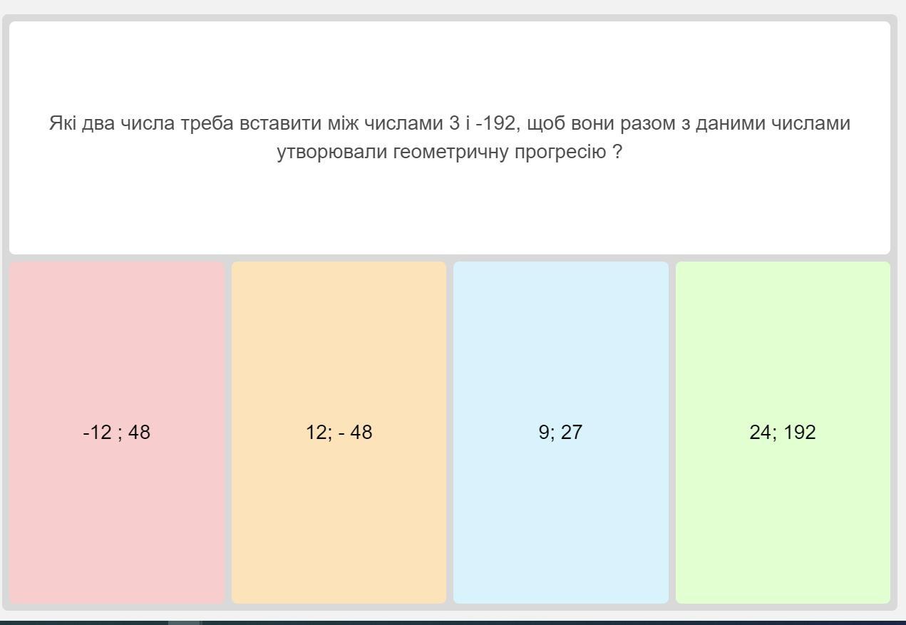які два числа треба вставити між числами 31 і -192 , щоб воні разом утворювали геометрічну прогресию