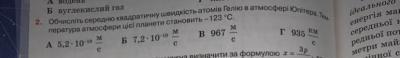 Тест з фізики , хелп (УКР/РУС) Обчисліть середню квадратичну швидкість атомів Гелію в атмосфері Юпітера . Темпер. атмосфери цієї планети становить -123 C