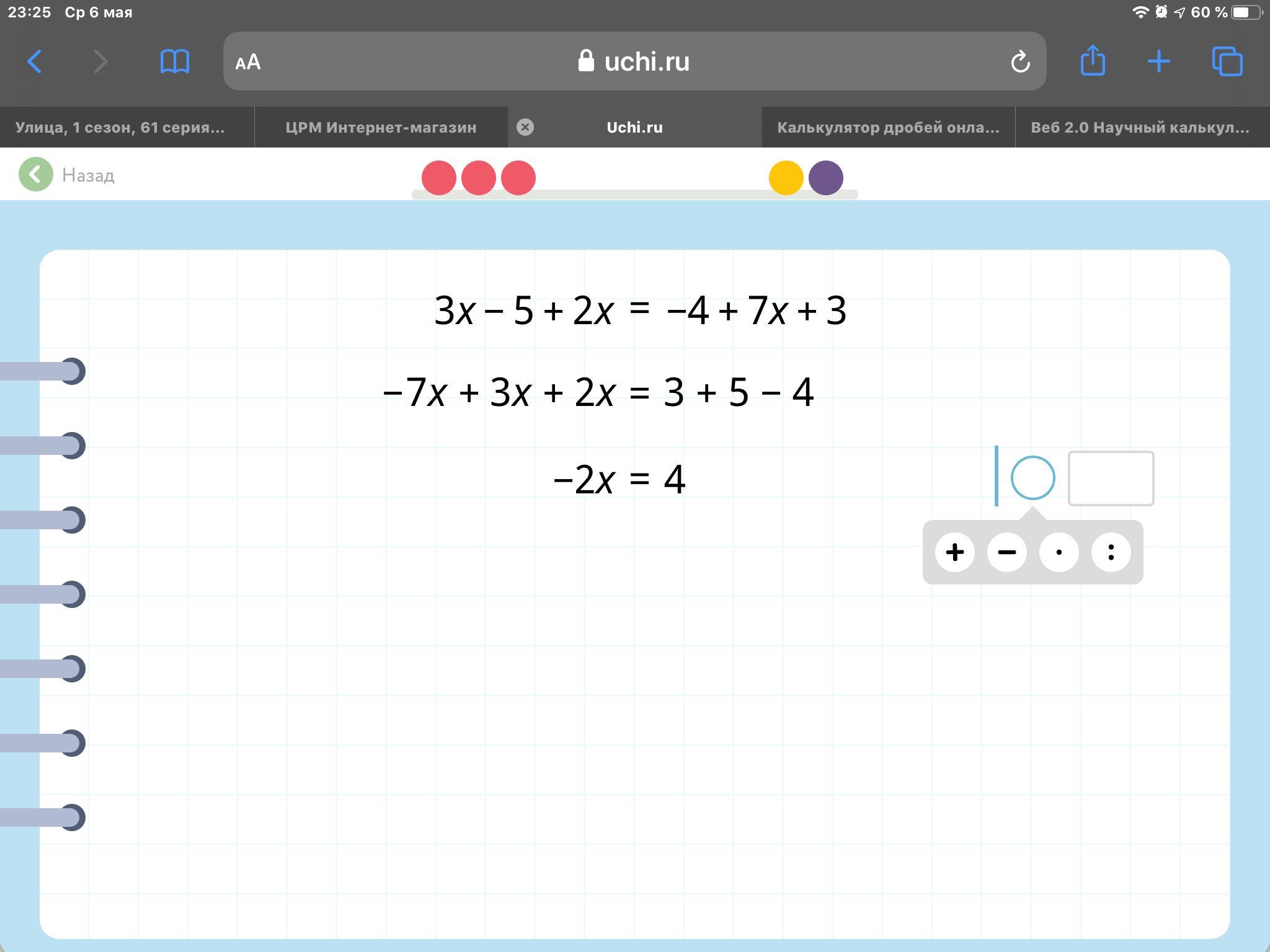 x=4:(-2)