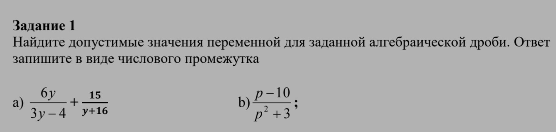 Найдите допустимые значения переменной для заданной алгебраической дроби. Ответ