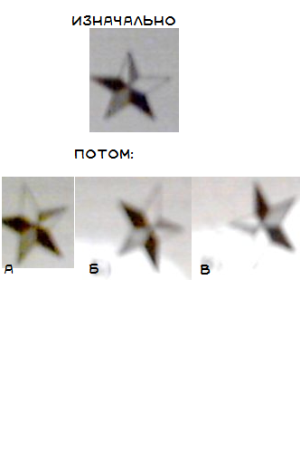 Вася нарисовал и раскрасил звезду, встал с рисунком перед зеркалом, а затем повернул на 270 градусов по часовой стрелке. Какой рисунок увидит Вася в отражении?
