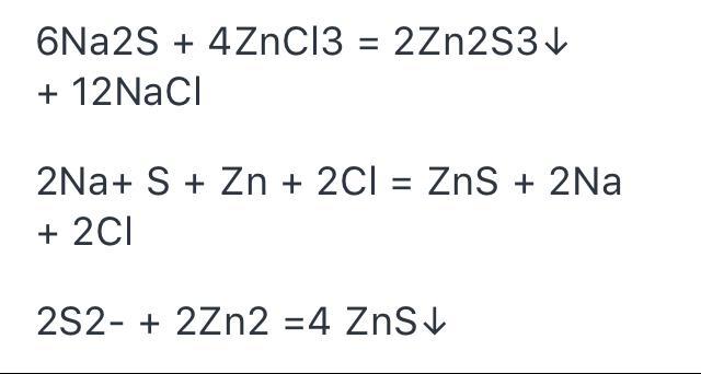6Na2S + 4ZnCl3 = 2Zn2S3↓ + 12NaCl