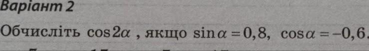 2)cos2a=cos²a-sin²a=2cos²a-1=2·(-0,6)²-1=-0.28
