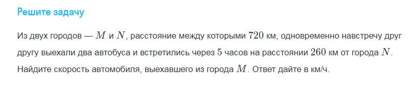 Путь ,пройденный автобусом из города М до встречи , равен S=720-260=460(км).