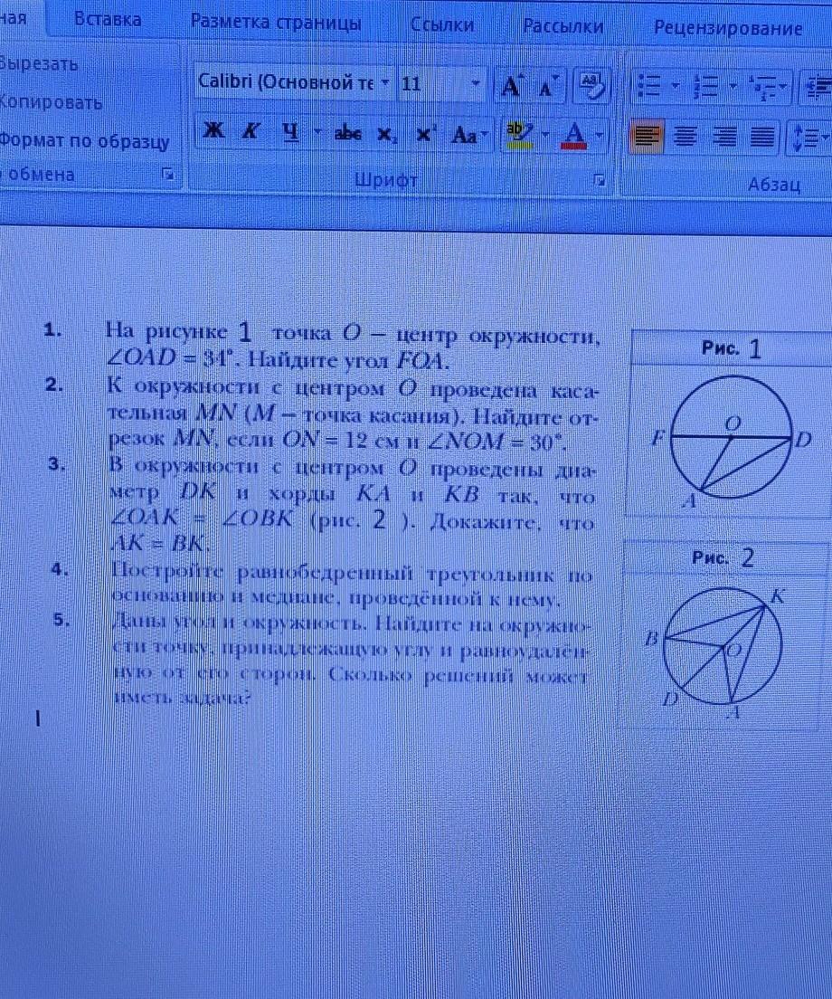 OA=OD ( т.к это радиусы) и => треугольник равнобедренный, и в этом случае, углы при основании равны, значит:
