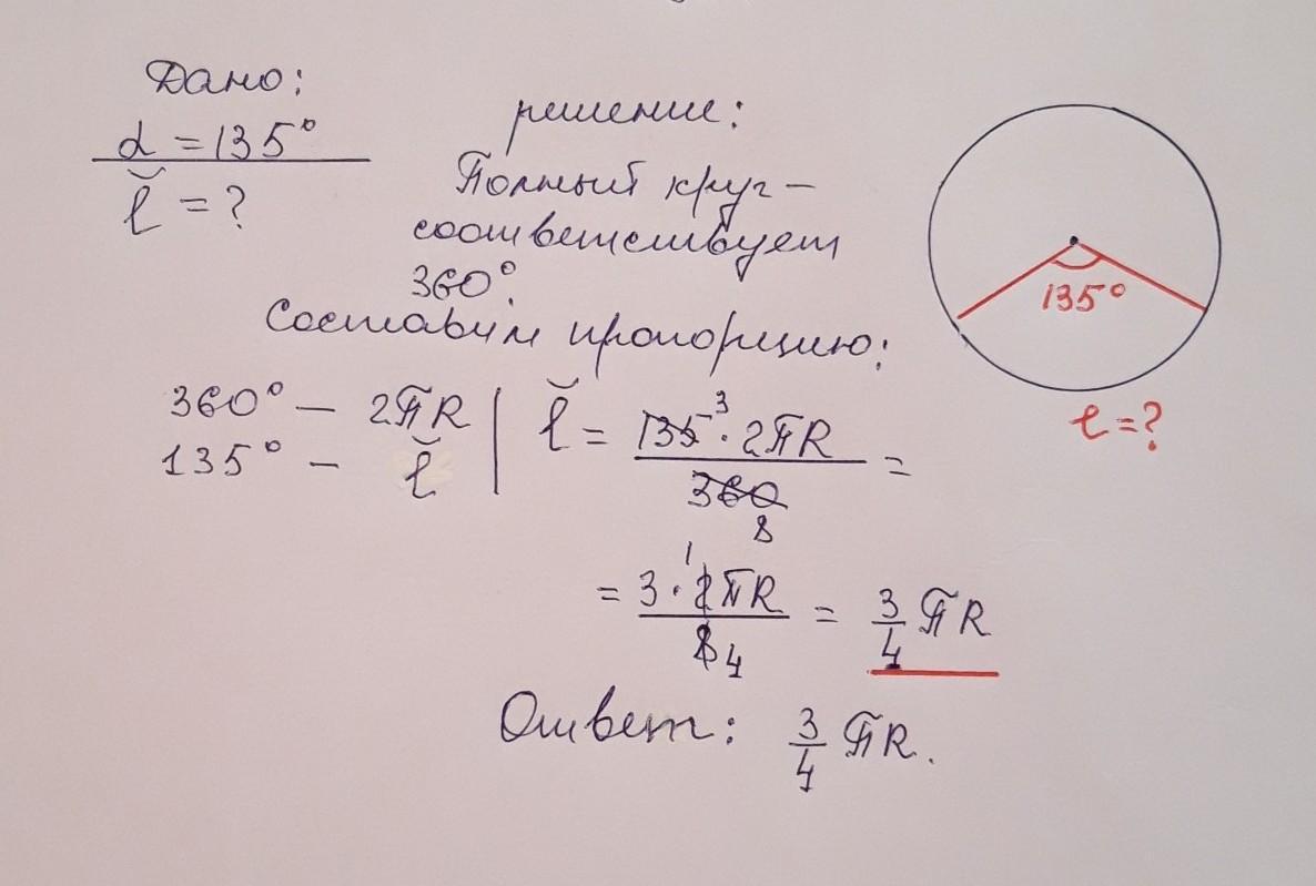 ! " Решение " : L = (135° /180°) *(πR) = (3/4) *πR. Ответ: (3/4)*πR .