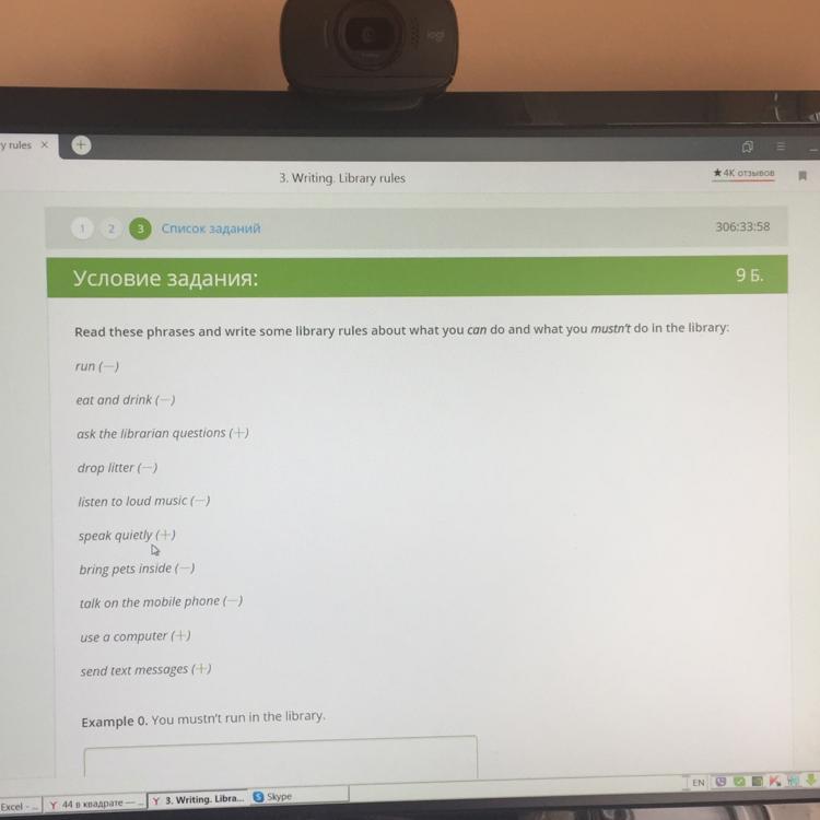 4. You mustn't drop litter 5.You mustn' listen to loud music 6. You can speak quietly 7. You mustn't bring pets inside 8. You mustn't talk on the mobile phone 9. You can use a computer 10. You can send messages Объяснение: это всё в библиотеке (in the library) говорится о том что можно делать, а что нельзя