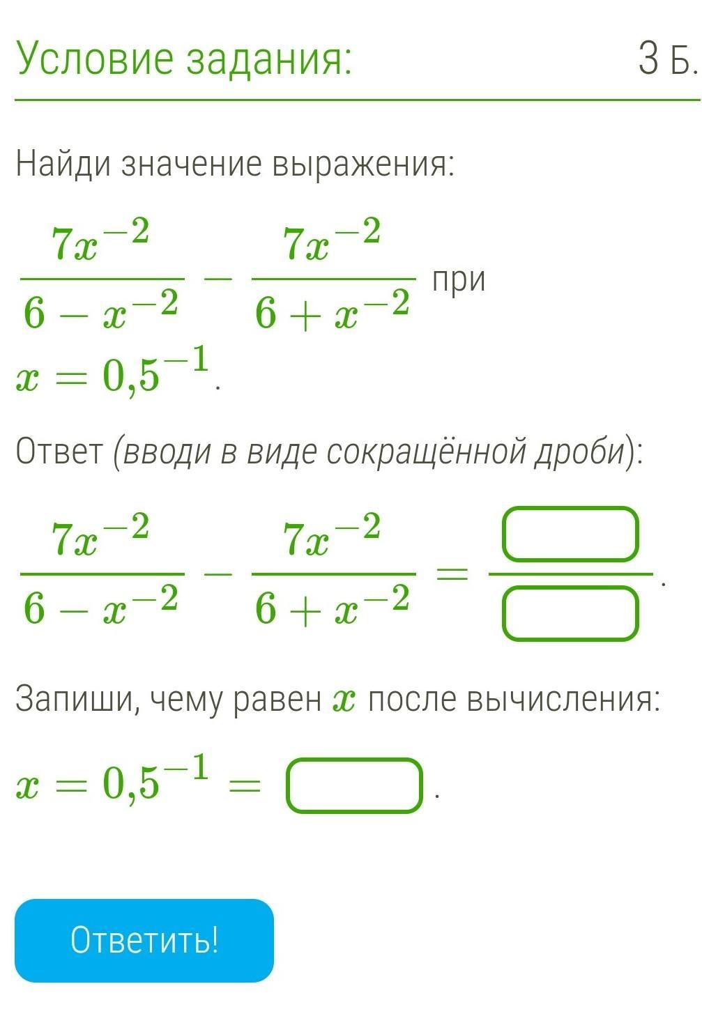 Ответ (вводи в виде сокращённой дроби):