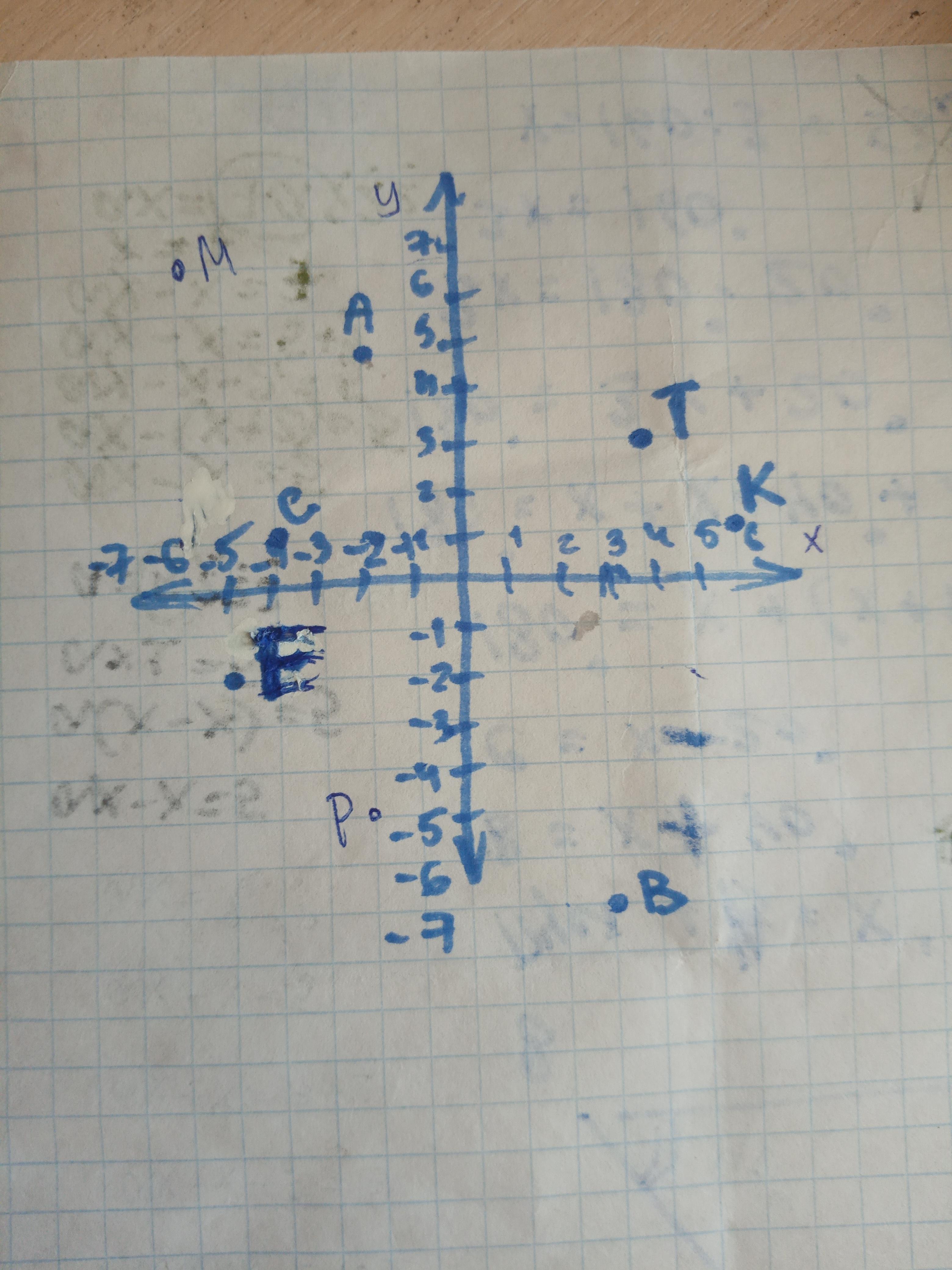 А(5; -2), В(-7;3), С(0;-4), Е(-5;-2), К(6;0),Т(4;3), Р(-2;-5), М(-6;7),
