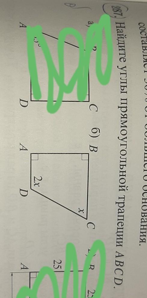 так как сумма углов в трапеции равно 360 градусов, а угол А и В равны 90 градусов, значит можно составить уравнение D + C = 360-A-B, то есть 2x+x=360-90-90