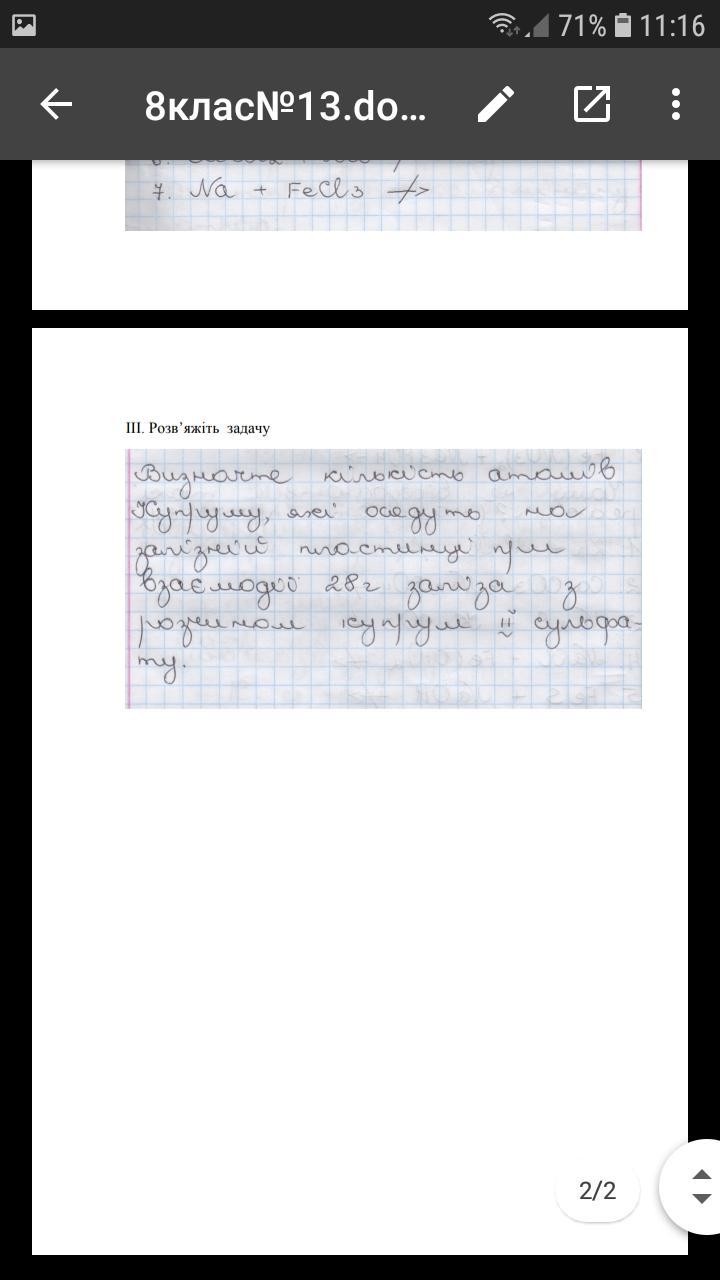 ДОПОМОЖІТЬ.Визначте кількість атомів купруму які осядут на залізній пластинці при взаємодії 28г заліза з розчином купрум 2 сульфату