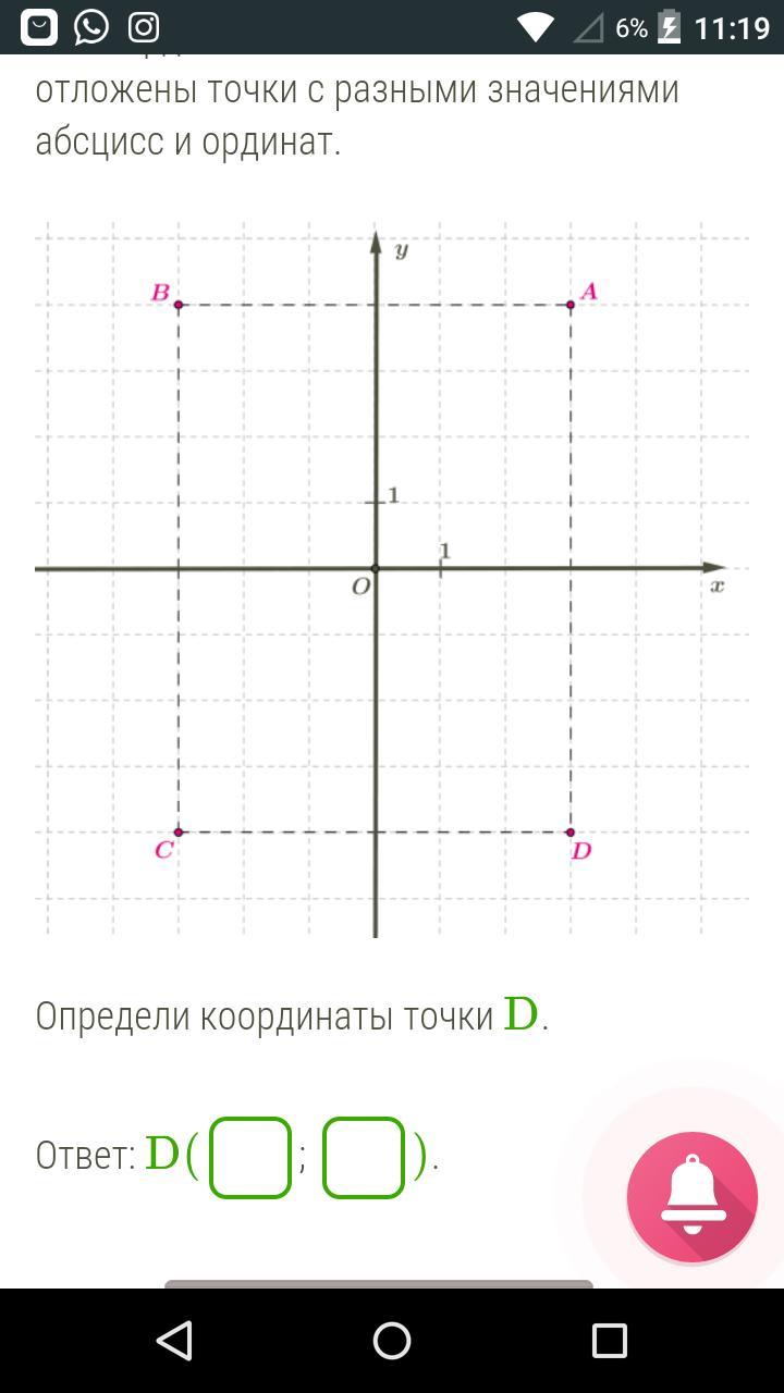 Определи координаты точки D.
