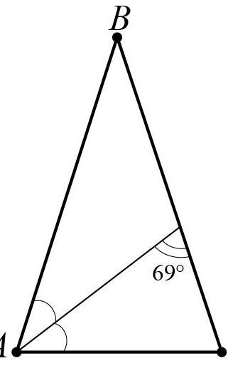 Биссектриса угла при основании АС равнобедренного треугольника АВС образует с его боковой стороной угол 69о так, как это показано на рисунке. Найдите угол этого треугольника при вершине В.