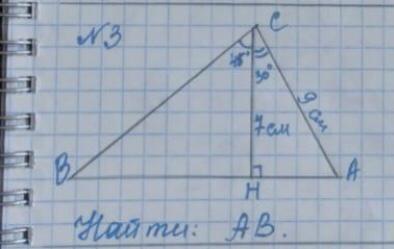 т.к. ∠АСН = 30°, то АН = СА ⇒ АН = 4,5 см