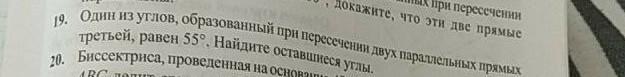 один из углов образованный при пересечении двух параллельных прямых третьей, равен 55°. Найдите оставшиеся углы