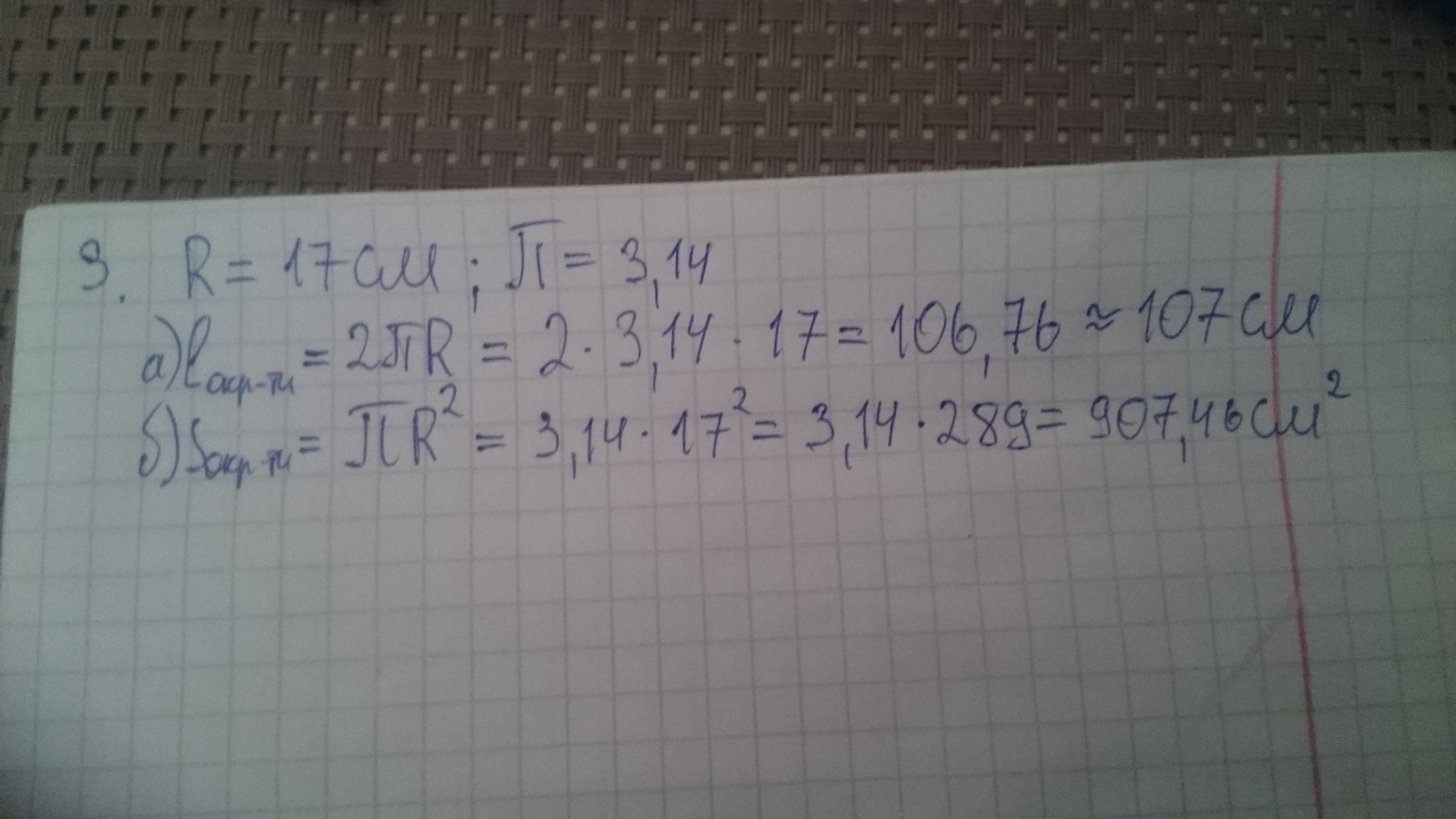 3. Радиус окружности равен 17см.. Вычислите приближенно