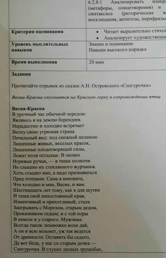 конкретно в этом отрывке , то бишь монологе весны антитеза проявляется в описании холодных, угрюмых, печальных земель берендеев, которые тяжело дышат под снежным покровом. но по-другому ее встречает южные долины: «там ковры лугов, акаций ароматы, и теплый пар возделанных садов».