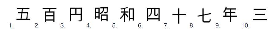 Даны обозначения номинала и даты чеканки на нескольких японских монетах: