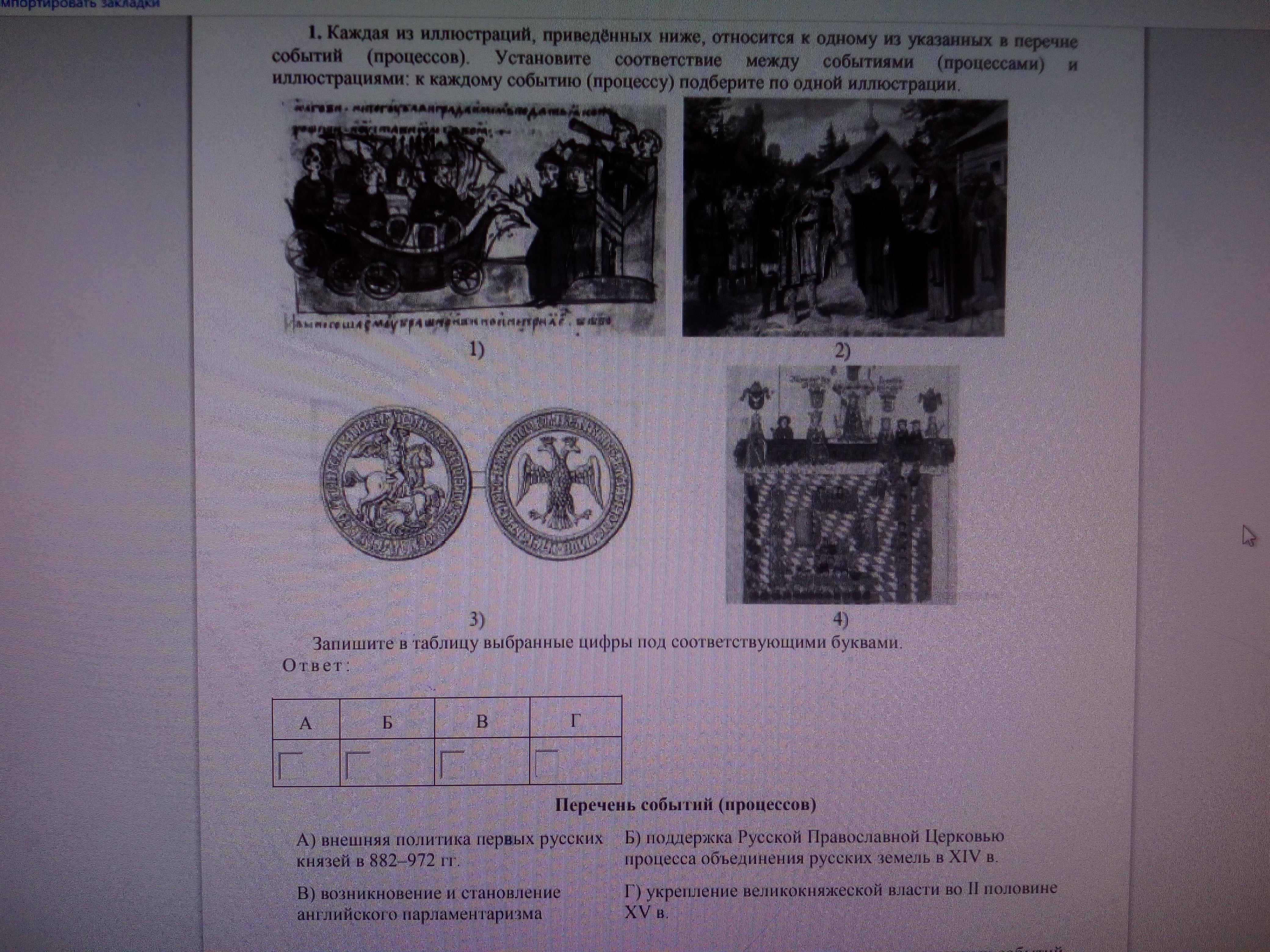1. Каждая из иллюстраций, произведённых ниже, относится к одному из указанных в перечне событий (процессов). Установите соответствие между событиями (процессами) и иллюстрациями: к каждому событию (процессу) подберите по одной иллюстрации.