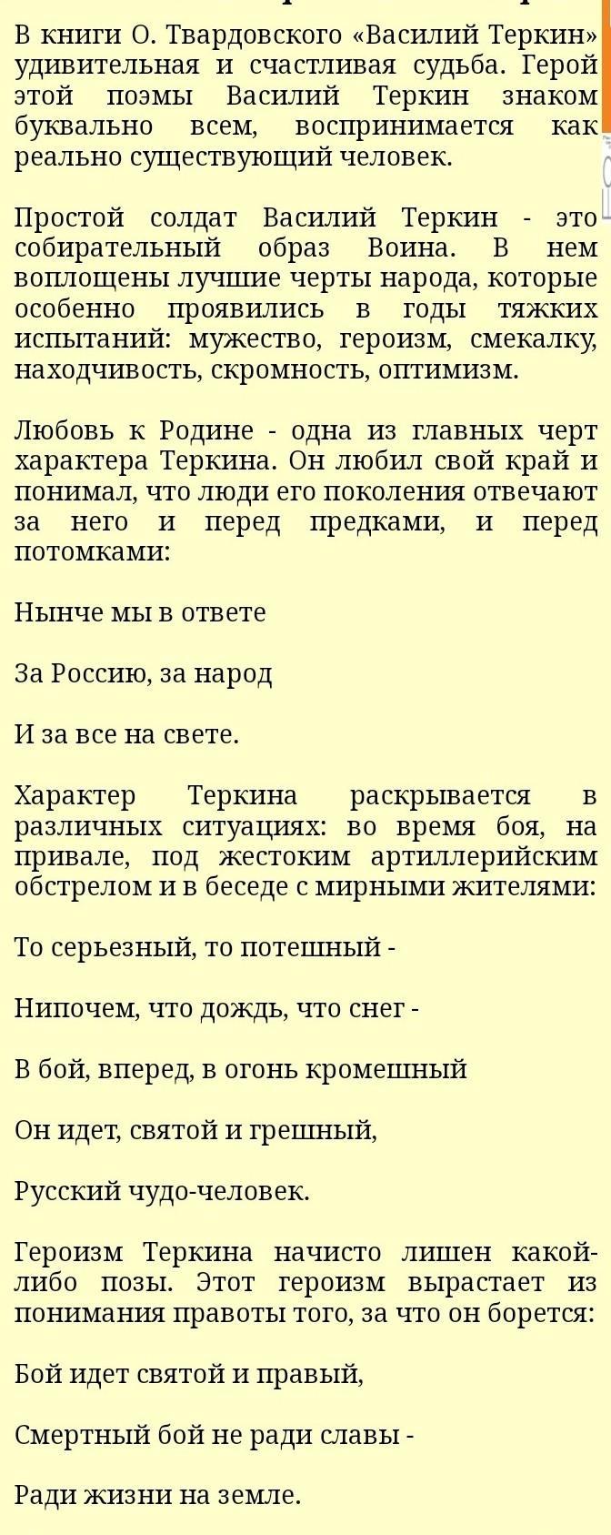 сочинение На тему "Василий Тёркин-мой любимый герой" по поэме Твардовского "Василий Тёркин"
