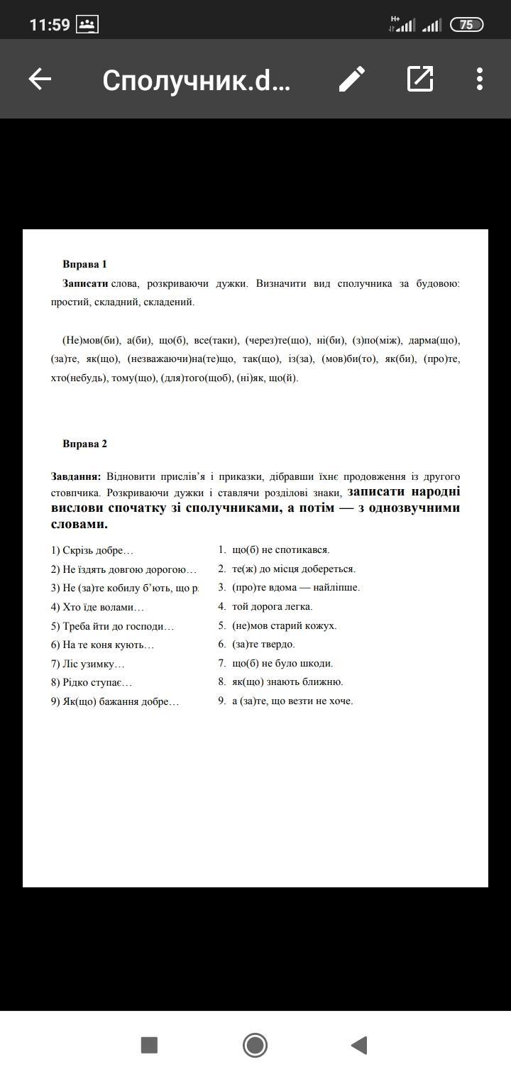 Не мовби(складений),аби(простий),все таки(складний),через те що(складений),нiби(простий),з помiж(складний),дарма що(складний),зате(простий),якщо(простий),незважаючи на те що(складений),так що(складний),iз-за(простий),мовби то(складний),якби(простий),проте(простий),хто небудь(складений),тому що(складний),для того щоб(складений),нiяк(простий),що й(складний)
