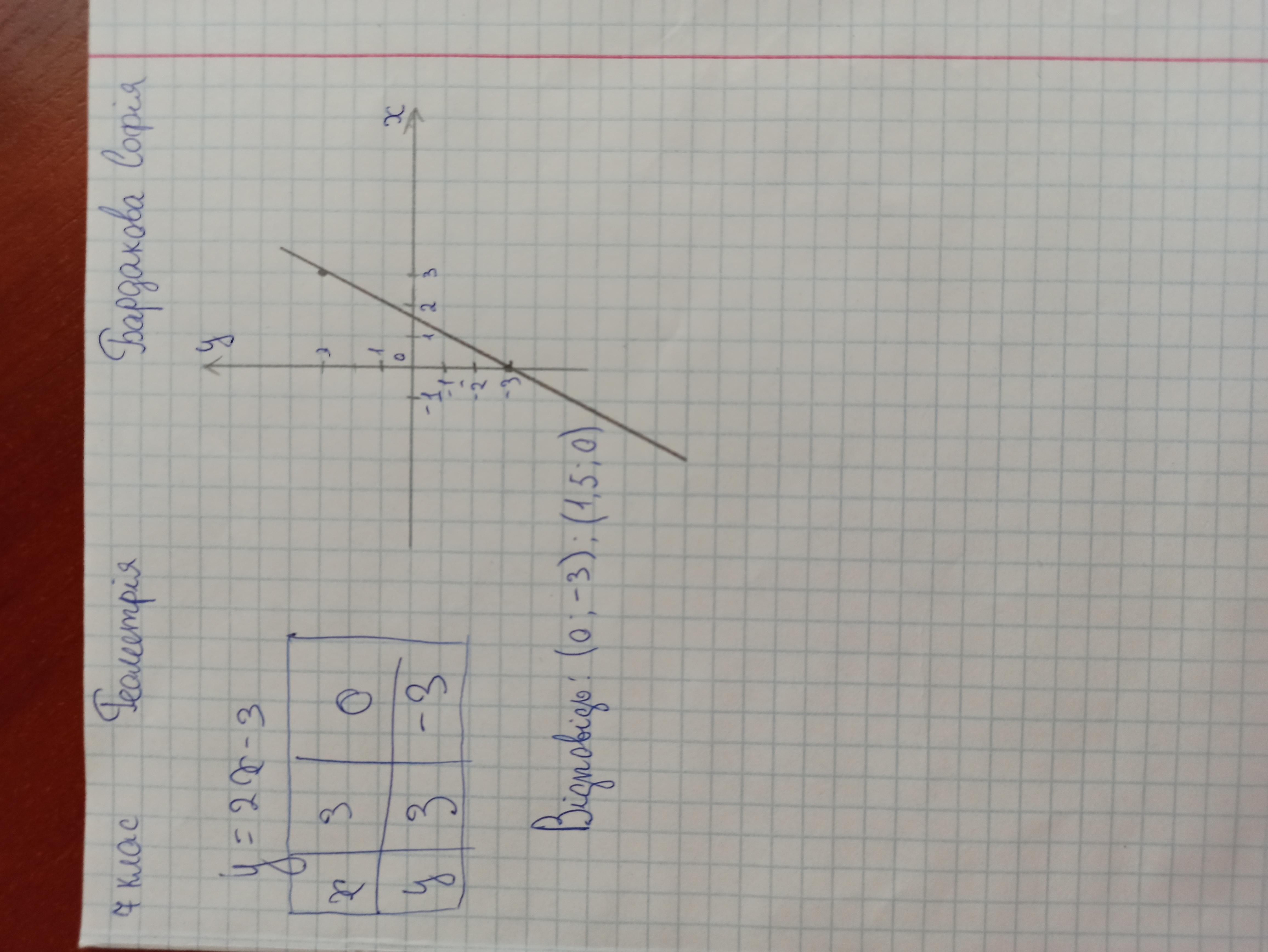 Постройте график функции у=2х-3 и найдите координаты точек пересечения графика с осями координат