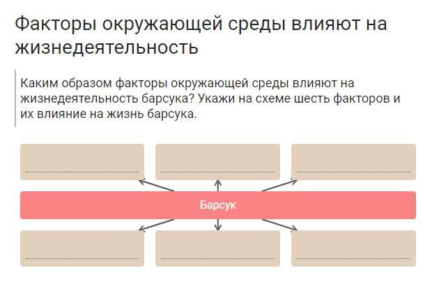 помогите Каким образом факторы окружающей среды влияют на жизнедеятельность барсука? Укажи на схеме шесть факторов и их влияние на жизнь барсука.