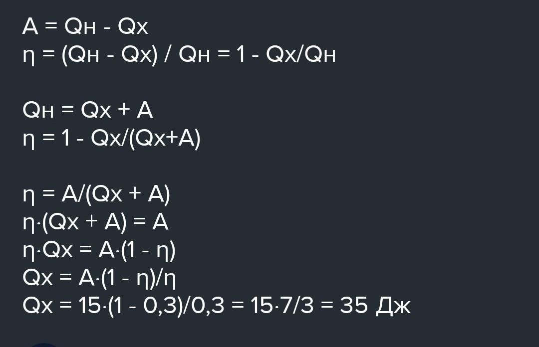 За один цикл теплова машина виконує роботу 15дж. Яка кількість теплоти передається при цьому охолоджувачу ?