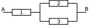 В електричній схемі, зображеній на рисунку, напруга між точками А та В складає 12 В. Опори резисторів: R1 = 7 Ом, R2 = R3 = 6 Ом.. Яка кількість теплоти виділиться на другому резисторі протягом 5 секунд?