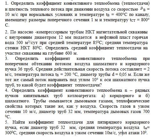 1. Определить коэффициент конвективного теплообмена (теплоотдачи) и плотность теплового потока при движении воздуха со скоростью B = 10 м/с при нормальных условиях и температуре tB = 400°С по каналу, имеющему размеры поперечного сечения 1 м и температуру tCT = 800°С.