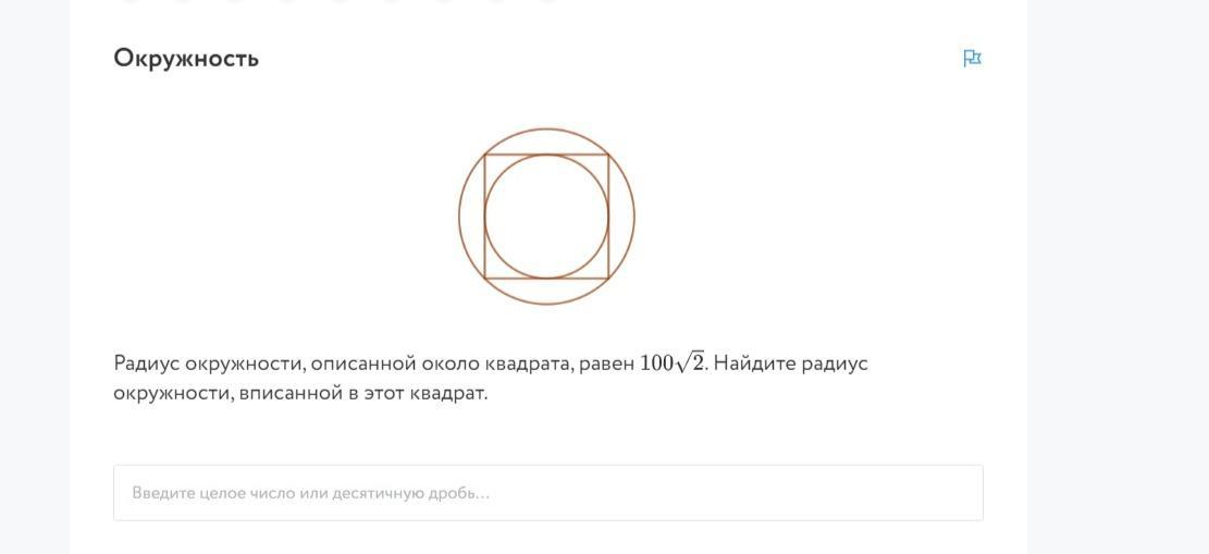 Радиус окружности, описанной около квадрата, равен 100√2. Найдите радиус окружности, вписанной в этот квадрат.