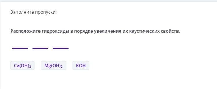 Расположите гидроксиды в порядке увеличения их каустических свойств Ca(OH)2 Mg(OH)2 KOH