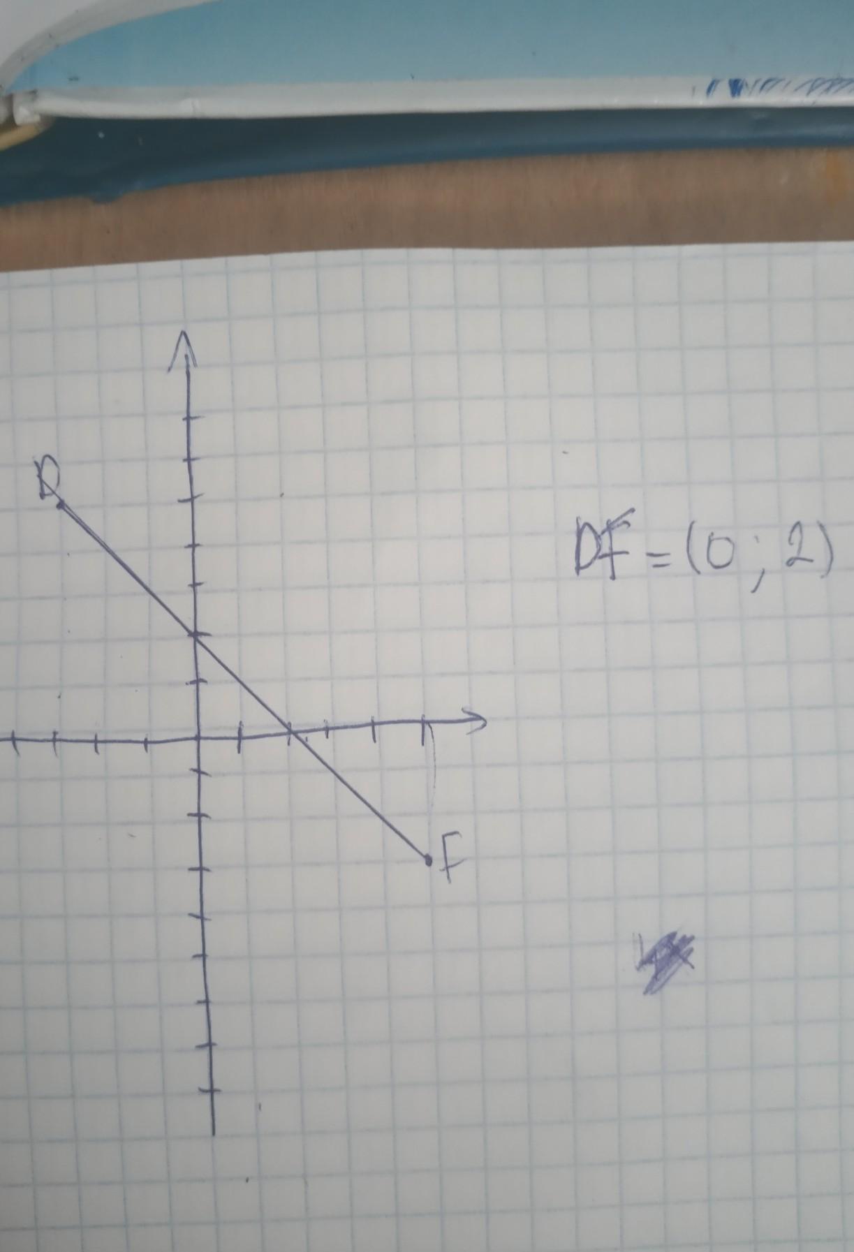 Отметьте на координатной плоскости точки D(-3;5), F(5;-3). Проведите прямую DF, определите и запишите в поле ответа координаты точки пересечения DF с осью ординат.