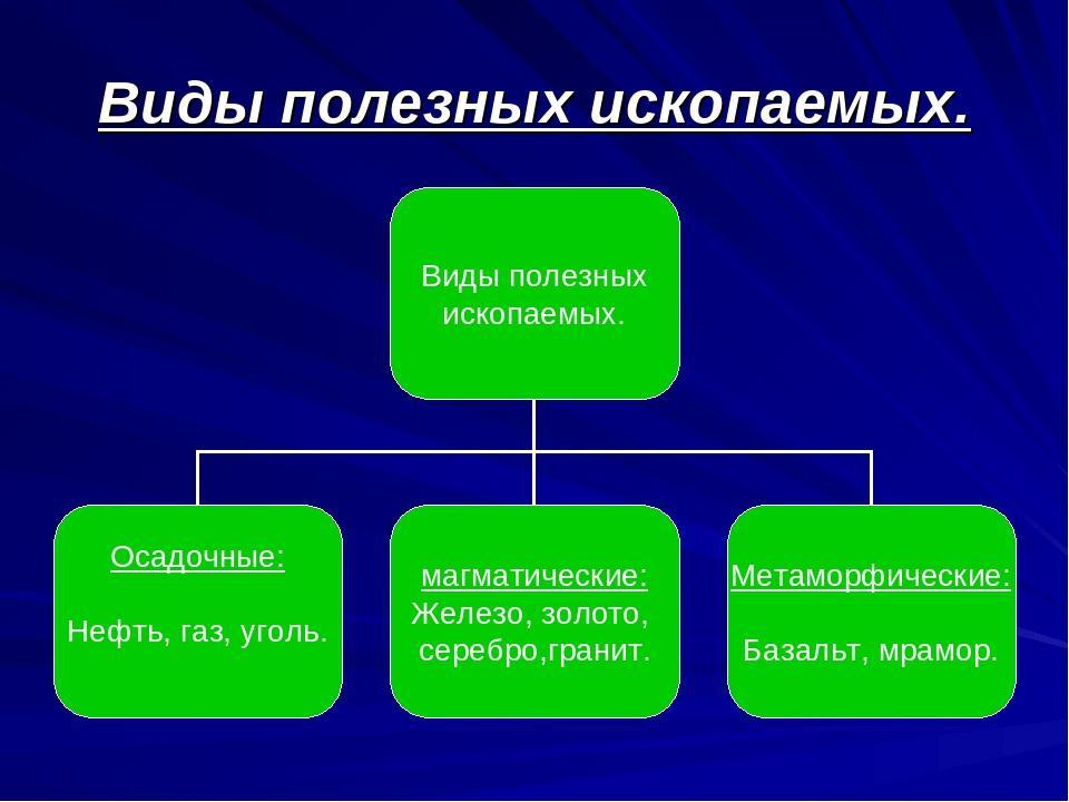 4.Виды полезных ископаемых (самостоятельно сделать схему,