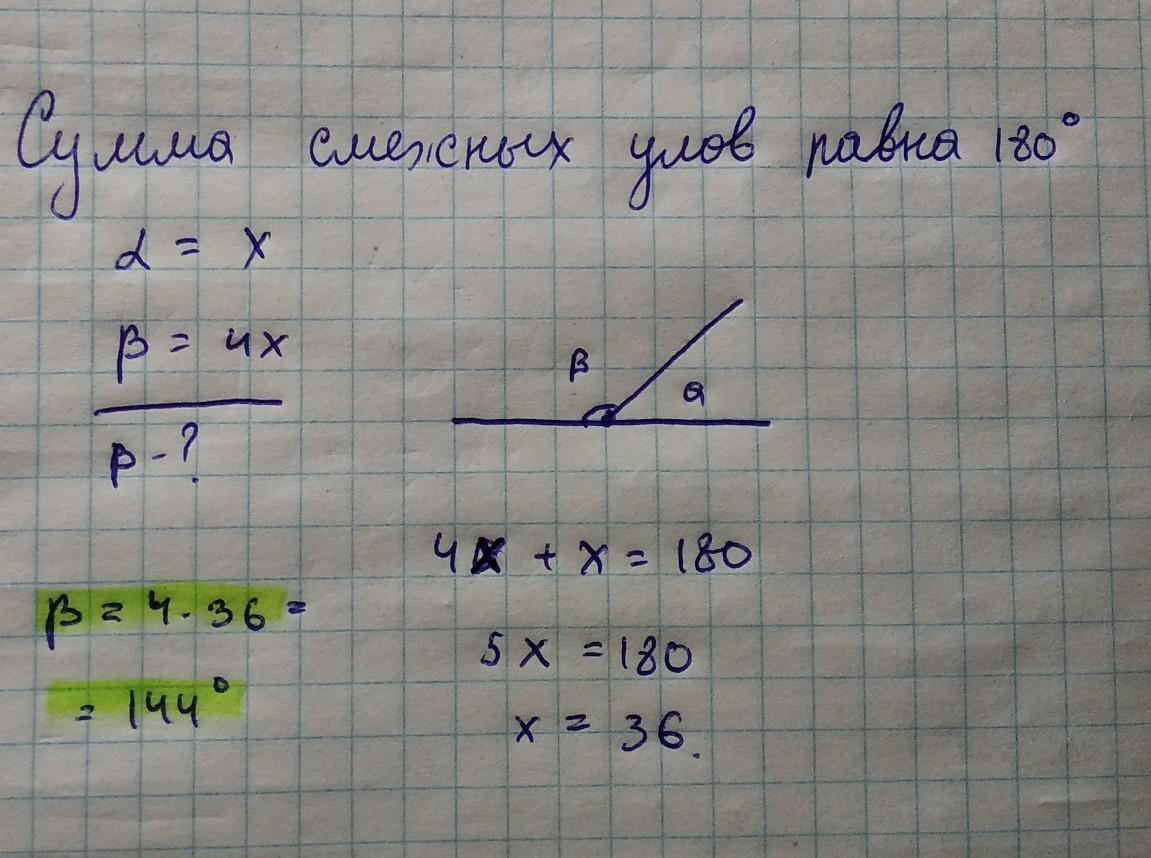 Сумма смежных углов равен 180 градусов, составляем уравнение:
