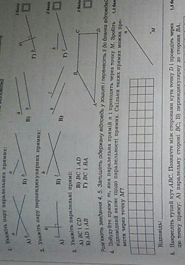 Помогите розвязать самостоятельную работу по темі ПАРАЛЕЛЬНІ ТА ПЕРПЕНДИКУЛЯРНІ ПРЯМІ 6 КЛАС